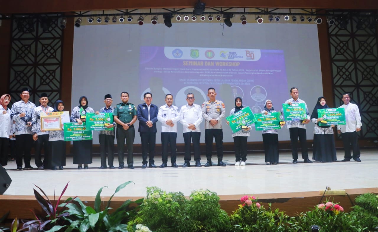 KORANHARIANMUBA.COM,- Pemerintah Kabupaten Musi Banyuasin melalui Dinas Pendidikan dan Kebudayaan bekerja sama dengan Pengurus PGRI Muba menggelar Seminar Pendidikan dalam rangka memperingati Hari Guru Nasional 2025 sekaligus HUT ke-80 Persatuan Guru Republik Indonesia (PGRI) Kabupaten Musi Banyuasin. Kegiatan berlangsung di Opp Room Pemkab Muba, Rabu (26/11/2025).
